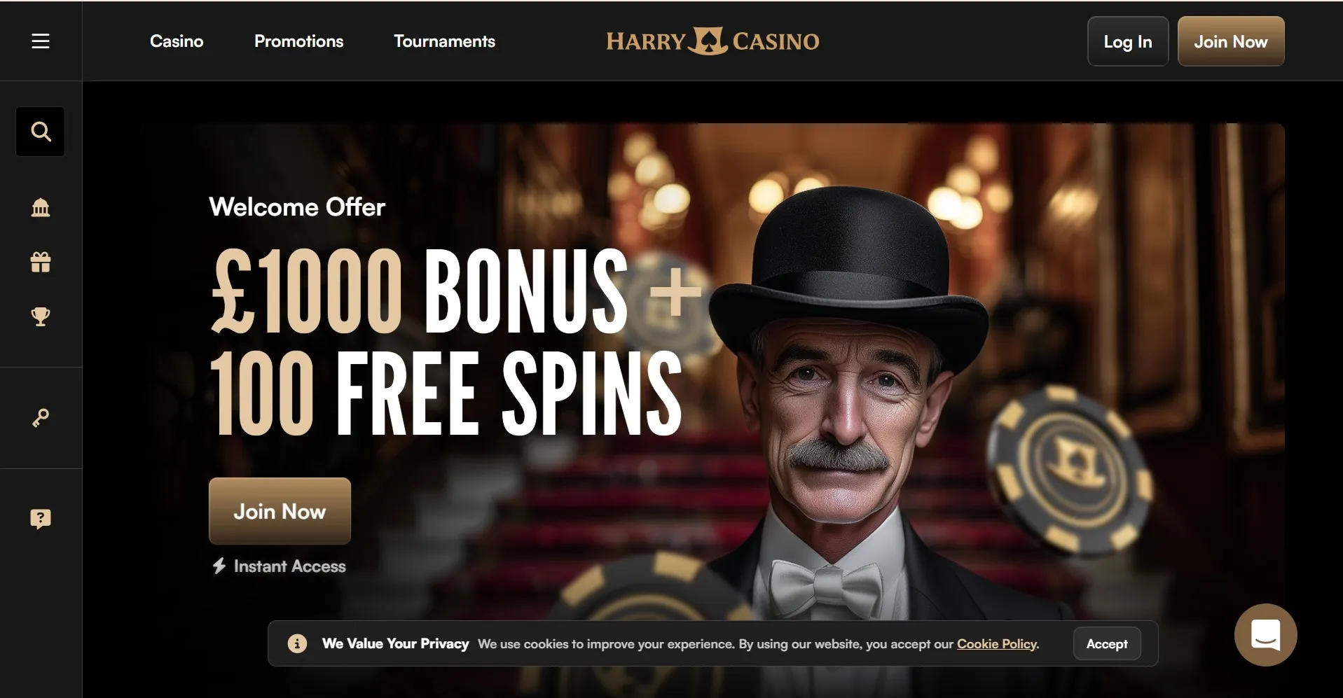 Harry Casino Review for UK Players - Up to £1,000 + 100 Free Spins