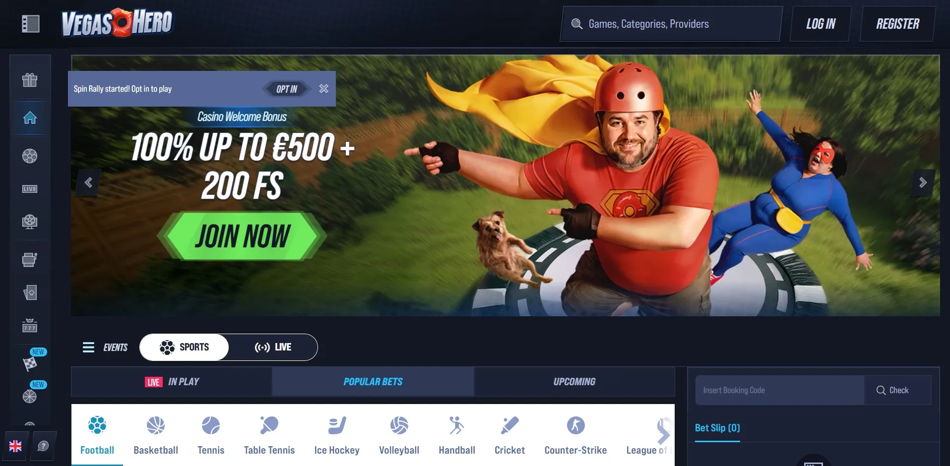 Vegas Hero Casino Review 2026 - 100% up to EUR 500 + 200 Free Spins
